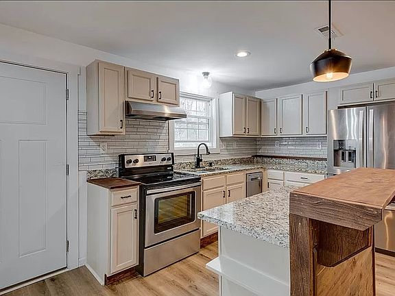 Total renovation from the studs out, offering granite countertops, stainless steel appliances, new plumbing, new HVAC, all new foundation, new flooring including subfloor and new electrical. Master bedroom has vaulted ceilings, and the master bath has a tiled shower and a soaking tub. The home has a covered front porch and 2 side uncovered porches/decks. Matching storage shed to stay.