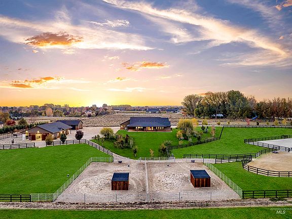 Welcome to the epitome of equestrian living on a picture-perfect and pristine 5-acre parcel located in an area of Eagle that rarely comes on the market. The gated entrance modern home is a sophisticated residence where upscale styling and flawless design provide a living experience blending comfort, style, and functionality. Accentuated by a multitude of horse-enthusiast features. Please request the “Special Amenities” associated with this property as they are extensive, including a 61’ x 40’ insulated barn with indoor/outdoor custom stalls, dedicated tack room and wash bays; oversized, interconnected paddocks, full-size arenas, and a 44’ x 30’ shop providing additional utility. Enjoy the serene feeling of rural living while enjoying forever mountain views, yet only a short drive from Idaho’s best schools, shopping, and dining. Private well water and no HOA assessment.