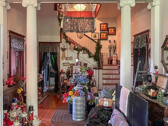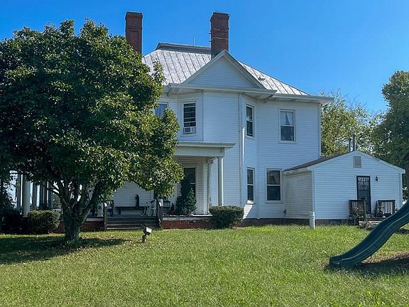 Grand Victorian home on 10 acres! Beautiful details abound in this lovely home to include large shaded porch with poured concrete steps. Gorgeous transoms above the solid wood doors. Walnut trim around the fireplaces. Wood floors throughout most of the home. Heated with propane heat (no central AC- cooled by window units) but also includes several fireplaces! 6 bedrooms and 3 full bathrooms (1 bedroom and full bath on the main floor and the rest on the second floor). Empower broadband available. Needs repair from previous water damage. Roof recently resealed and newer vinyl windows! Vinyl siding covers most of the home. Separate living quarters or rental opportunity includes 1 bedroom with full bath, living room and full kitchen. Needs repairs. Property also includes a barn and several storage buildings! Zoned A1 - bring your horses or farm animals! Strictly AS-IS.