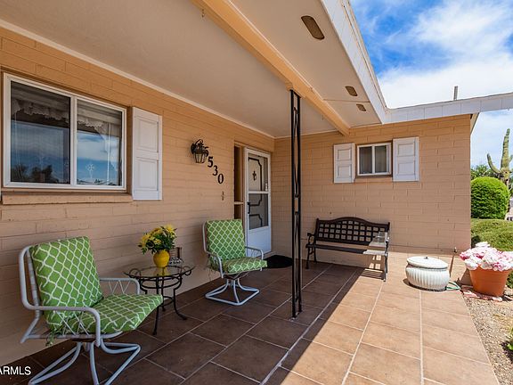 You'll love this home in the welcoming 55+ community of Dreamland Villa! This lovely home is on public sewer, NOT SEPTIC, and has been updated over the years. The kitchen offers newer cabinets, tile floors, dishwasher and includes the refrigerator. This energy efficient home has ceiling fans throughout, dual pane windows & patio doors. Out back you'll find a large covered patio along with citrus trees and privacy from the block fence - the perfect area to relax and enjoy our beautiful AZ weather. The large laundry room has storage cabinets and the washer & dryer are included! Move in ready & waiting on new owners to enjoy all this home has to offer. Conveniently located near lakes, river, restaurants, shopping, hospitals and freeway access. Enjoy residing in the energetic 55+ community of Dreamland Villa with two clubhouses, swimming pools, spas, exercise room, sports courts, concerts, activities and so much more! Voluntary membership of $175/pp annually give you access to the popular, resident's only association with swimming pools and many other amenities. Resident's annual fees also work towards preserving the communities' 55+ status.