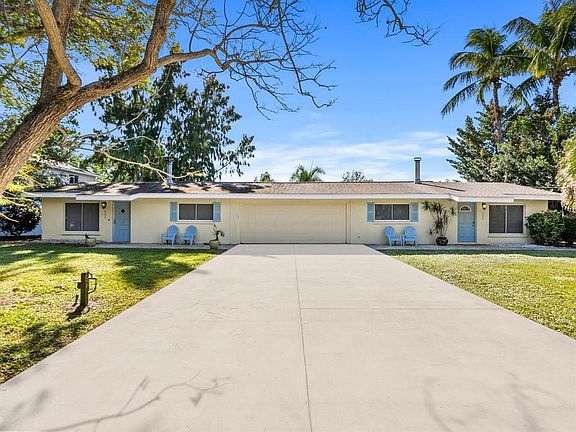 Duplex bungalow located on the south end of Siesta Key. Private and quiet and located two blocks to beach access. Two identical floor plans in each unit. Both of them 2 bedroom and 2 baths with their own unique decor. Zoned Residential Multifamily, the units can be rented with a 1 week minimum. The pool and garage are sharedby both units. Pool in the back yard situated on a 16,000 square foot lot. Property overlooks atidal pond. Most of the rear yard is covered in pavers so plenty of space to lounge and enjoy the pool. Definite investment property solease the entire duplex having 4 bedrooms/ 4 baths and 2200 sq ft or lease half the duplex for the week or by the month and enjoy the other unit. Both sides have had updates along the way. Turnkey furnished.Beach chairs/ toys and pool accessories are in the garage as well as the washer and dryer which is also shared.