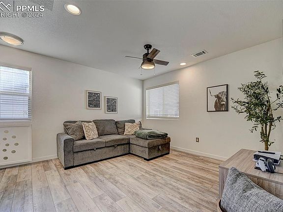 Don't wait, this one won't last long!!! This absolutely gorgeous home features a stunning kitchen, 3 bedrooms, two living rooms, 3.5 bathrooms, and a 2 car garage in the sought after Banning Lewis Ranch community! Enter through the front door and walk up to the second level with open concept living room, dining and kitchen area, perfect for entertaining guests. Spacious kitchen provides generous cabinet storage and counter space. Kitchen also features oversized barstool height center island with beautiful countertops, stainless steel appliances, and pantry. Just beyond the dining area walk through the sliding glass doors to the rear deck. The main floor features a second living room, full bath, and space that is currently being utilized as a bedroom but has myriad possibilities like a workout area. The main floor is level with the garage and has walkout access to the rear yard. Upstairs features all bedrooms, two full bath, and laundry on the same level. Master bedroom includes walk-in closet and gorgeous master bath with dual vanity. Bedrooms 2 and 3 are also upstairs with lots of light and are very spacious. Enjoy your summer evenings barbecuing or playing games in the fully fenced rear yard. This fabulous home is located in the amazing Banning Lewis Ranch community with amenities galore. Walking distance to schools, hiking/biking trails, pools/parks, pickle ball courts and dog park. Community includes neighborhood schools, over 75 acres of parks/trails/open space, tennis courts, basketball court, rock climbing parks, zip-lines, access to pools, splash pad, water park, and dog park. Recreation center houses a fitness center and also regularly hosts classes and events for all ages. In the summer months, catch a neighborhood concert, festival, food trucks, farmers market or enjoy other regular community events. This community has it all.