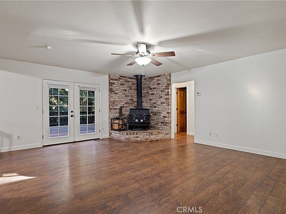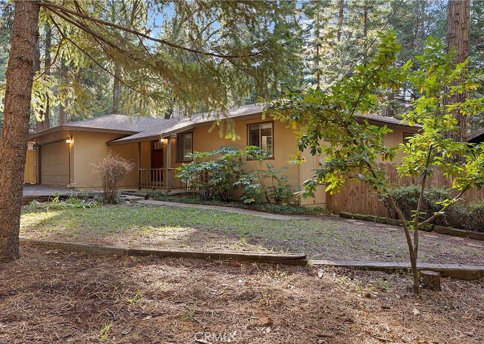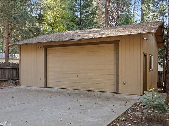 Through the beautiful custom front door, you'll be welcomed into a great room with a cozy wood fireplace. A galley kitchen is open to the great room with updated appliances and a beautiful view of the backyard from the kitchen sink. French doors access a generous wood deck that would be a wonderful place to enjoy your delicious meals. There are two bedrooms with newly installed carpet. The primary suite has a full bath, and each bedroom has a ceiling fan. The hall bathroom is updated with a slate-tiled walk-in shower and a beautiful glass enclosure. The leathered granite countertop is adorned with a clear glass sink and oil-rubbed bronze faucet. This home boasts solid wood doors and levered handles. The two-car garage has some built-in storage and a washer and dryer that are included in the sale. There's a second 2.5-car detached garage in the corner of the backyard with built-in cabinets and a workbench. You could have a shop and park extra cars. With almost 3/4 of an acre, there's plenty of room to park an RV behind the gated fence. You also have a covered area to store your firewood. Look closely near the stone pond; you will find an electrical outlet and water spigot. This cozy retreat is sure to make a wonderful place to call home.