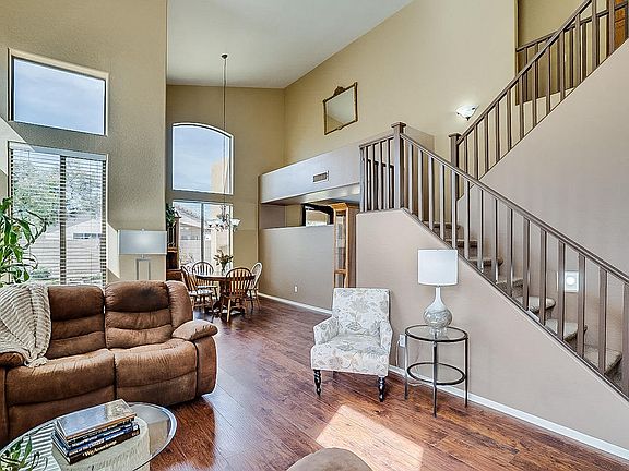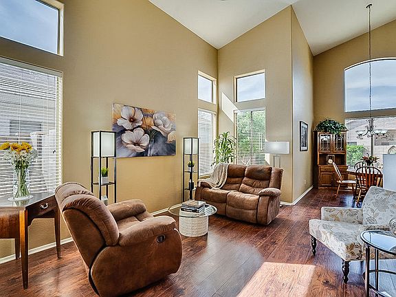 This great Eagle Highlands South home welcomes you with soaring vaulted ceilings and a great spacious layout for family living. Neutral tile and wood laminate flooring downstairs and ceiling fans throughout. The kitchen opens up to the great room with views of the yard. 4 bedrooms upstairs with a large master bedroom and bath with walk-in closet. This home has had only one owner who has cared for and loved this house. Located in a friendly and quiet community surrounded by mountain views, it has convenient access to the 101, the 17 and Lake Pleasant Pkwy. Come and see the great potential this home has for yourself!