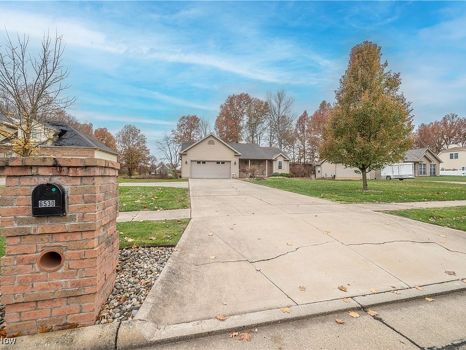 Beautiful Open-Concept Ranch in Lordstown — Immaculate, Spacious, and Exceptionally Maintained! This stunning open-concept ranch offers over 1,900 sq. ft. of comfortable, modern living space on nearly half an acre in the sought-after Lordstown School District. Thoughtfully designed, the layout features a welcoming great room with a cozy fireplace, an adjoining dining room, and a bright kitchen with a breakfast nook that opens through patio doors to the deck — creating a seamless flow that’s perfect for entertaining or everyday living. The kitchen includes Corian countertops, newer stainless-steel appliances, and plenty of cabinet space. You’ll appreciate the convenience of a first-floor laundry (washer and dryer included). The primary suite provides a private retreat with its own full bath, while two additional bedrooms and another full bath complete the main floor. Gorgeous hardwood floors throughout the open living area with carpet in the bedrooms. The full finished basement offers incredible flexibility with its own bedroom, full bathroom, and spacious living area — ideal for an in-law suite, guest space, or second living quarters. A newer sump pump with battery backup provides peace of mind, and there’s ample storage throughout. Outside, the property shines with numerous updates: eight trees and ten stumps removed for a cleaner, more open yard, a new gutter guard system, and freshly power-washed deck, house, and shed — plus new shed doors for added appeal. The professionally landscaped yard, two-car garage, and quiet dead-end street create a peaceful setting that’s both private and welcoming. Meticulously maintained and truly move-in ready, this home combines space, comfort, and thoughtful care in one exceptional Lordstown property — a must-see!