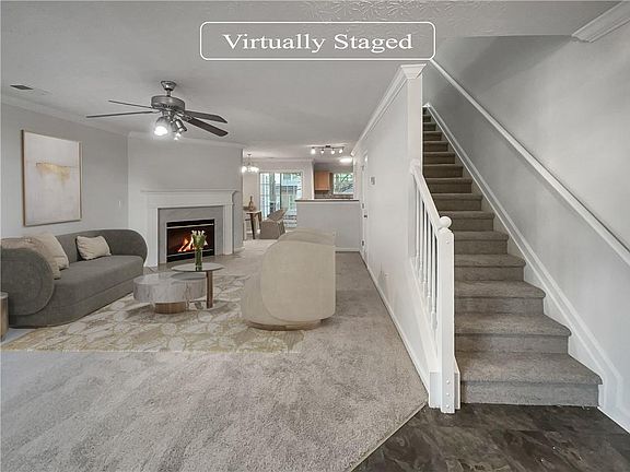 Welcome to this inviting 2-bedroom, 2.5-bathroom townhome located in a sought-after gated Arbor Gate community. Designed with both comfort and convenience in mind, this home offers a functional layout, modern updates, and a fantastic Mableton location close to everything you need. The main level features a bright, open-concept floor plan where the family room with cozy fireplace flows into the dining area and kitchen, creating the perfect setting for entertaining or relaxed everyday living. The kitchen is well appointed with stained cabinetry, stainless steel appliances, a breakfast bar, and plenty of counter space. Upstairs, a spacious loft area provides flexibility—ideal for a home office, study space, or relaxation nook. Both bedrooms are designed for comfort and privacy, each offering its own full bath. The primary suite is a true retreat, complete with a walk-in closet and a bathroom featuring a separate tub and shower. Additional highlights include upstairs laundry for added convenience, as well as a private patio with attached storage room, perfect for outdoor living or extra storage. Enjoy the security and ease of gated community living while being just minutes from I-20, shopping, dining, and parks.