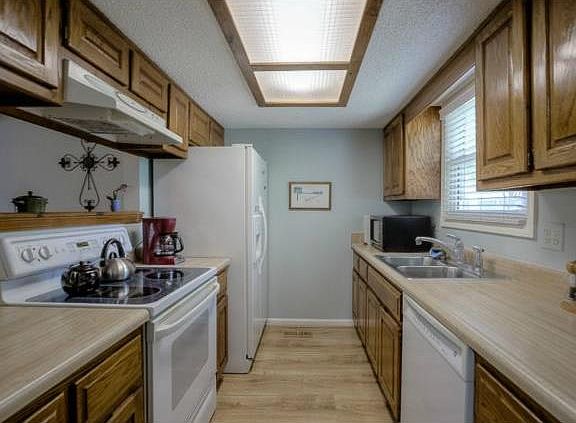 Ready-to-go! Corner 2 story townhome. Newly painted Beige living rm. Carpet allowance w/ offer. Updated bathes, newer thermal windows, nice kitchen w/ large pantry, rare finished lower level w/ separate storage rm. Solid foundation. Nice thermal pane French doors with interior glass blinds, leads onto double tier cedar patio, overlooks fenced backyard garden. So much space. Covered lighted assigned carport with adjacent 2nd private car space. Community pool and clubhouse. Conveniently near shopping, schools & I-35.