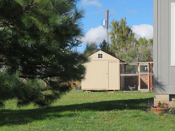 Gorgeous & Efficient 2016 manufactured home, full foundation with 22x28 shop. Fully fenced ( 6ft tall front) .51 acre, level and perfect for gardening. Split plan, 4 bed and 2 bath. Master suite to have tub and shower installed. Great room plan with coffered ceilings, family and living area with awesome open kitchen, tile backs and countertops. Pellet stove, chicken coop, storage shed. RV parking out front. Like new!!