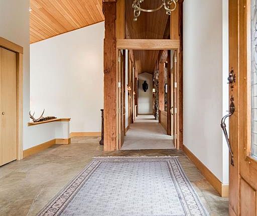 Tucked in a private clearing, and unnoticeable from either Jackson Creek or Bridger Canyon Roads, is a one-of-a-kind property offering ultimate privacy and incredible views. With unique architectural features and fixtures the main floor roof is framed with massive reclaimed fir timbers. Floor-to-ceiling windows, vaulted tongue & groove wood ceilings, and an open floor plan provide light-filled, easy living space. The main floor features a master suite, large kitchen and hearth room, great room with wood-burning fireplace, dining room, office and over sized 2 car heated garage. The walkout lower level features two en-suite bedrooms, a large wine cellar with safe room and room to add another bedroom/bath and theater/game room. The 60 acres is unmatched in privacy for the area and undulates from lower hay fields to sub alpine forest with spring and pond just below the house for your wildlife viewing pleasure. Massive Bridger Mountain views and bordered by conservation easement.