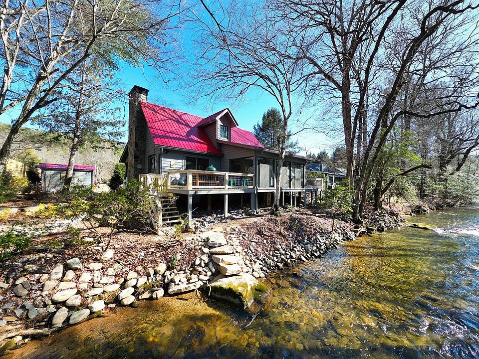 Beautiful Riverfront Gem of a cabin!! This 3BR/2BA cabin is newly remodeled situated on the banks of the Hiawassee River & boasts a modern fresh look: Features include a newer Kitchen & Stainless Appliances, Tile baths, shiplap interior wall, Gas FP, Custom Cabinets & counter tops, Infinity Windows, new decks, new blinds, a dual fuel gas range & elec. Oven, Gutters, incapsulated crawl space & new HVAC system. In addition this cabin comes furnished, Boasts a beautiful riverside sun room, multiple decks/porches & a detached garage. Ready to start enjoying day 1!! Located in Hi River Country with great trout fishing. This is the one you have been waiting for.
