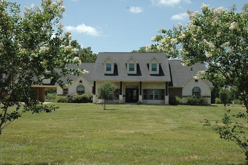 GORGEOUSLY APPOINTED 1.5 STORY CUSTOM DESIGNED HOME BUILT IN 2007 SITUATED ON 8+ ACRES WITH A PRIVATELY STOCKED POND! LOCATED IN A QUIET RURAL SETTING YET CLOSE TO SHOPPING & RESTAURANTS. INVITING OPEN FLOOR PLAN DESIGN WITH COVERED BACK PORCH MAKE THIS A DELIGHTFUL HOME FOR BOTH RELAXING & ENTERTAINING! FEATURES INCLUDE: SS APPLIANCES, ISLAND KITCHEN, GRANITE COUNTERS, STONE FIREPLACE, LUXURIOUS MASTER BATHROOM SUITE WITH OVERSIZED SHOWER, BOOK SHELVING IN STUDY & DEN, CROWN MOLDING THROUGHOUT. HOUSE DID NOT FLOOD DURING HARVEY.