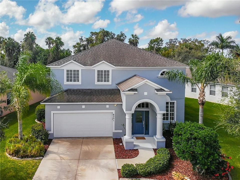 This beautiful 4 bedroom 3 1/2 bathroom residence is one of the largest models and best values in the highly desirable community of Covered Bridge Estates. A large covered entry welcomes your approach as you walk through the leaded glass entry door adorned with elegant side lights and a transom window above. Once inside, your attention will be drawn to the light and bright open floor plan that is ideal for a growing family or for entertaining friends. The floor plan offers an open living and dining room area with gorgeous bamboo wood floors, crown molding and large windows that provide an abundance of light. The large kitchen features wood cabinets, breakfast bar seating, stainless appliances and a walk-in pantry. It overlooks an open family room trimmed with crown molding, a built-in surround sound speaker system, recessed lighting, ceramic tile and sliders that lead to the screened lanai and yard set against the backdrop of a lush green wooded preserve. The second floor master suite will impress with a large sitting area that can be used as an office or fitness room, a dual vanity with makeup counter, his and hers walk-in closets, a drop-in garden tub and a walk-in shower. Also on the second floor are two guest bathrooms and three generously sized guest bedrooms with premium grade carpet, crown and chair rail molding and ceiling fans. This home has been well maintained with new exterior stucco and paint in 2017, two new Trane HVAC units in 2016 and 2017, new front entry door in 2017 and new water heater and range in 2020. Covered Bridge Estates offers a clubhouse with separate areas for fitness, billiards and social gatherings, a community pool, tennis courts, basketball courts and a playground. It also has low HOA fees, no CDD fees and is conveniently located close to shopping, waterfront dining, beaches and to I-75 for easy access to St Pete, Tampa, Sarasota and Lakewood Ranch. Start living the wonderful Florida lifestyle that awaits you!