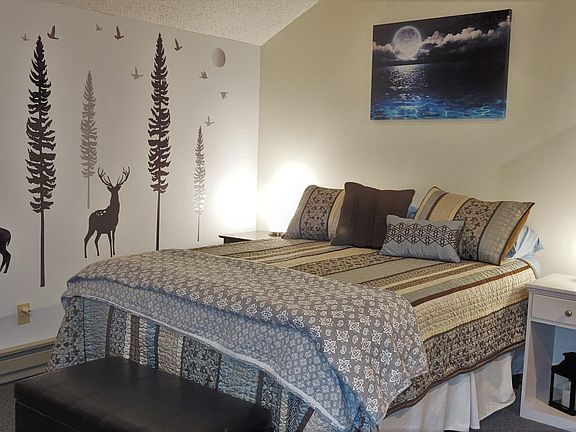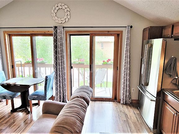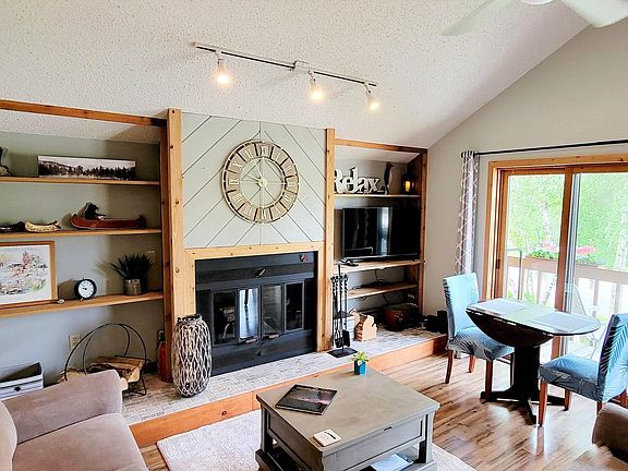 One of a kind condo - walk to the ski mountain, pro shop, and pool from here. The kitchen-living room combination with vaulted ceiling and double sliding glass door allow ample light. The wood burning fireplace with newly tiled hearth provides ambience and warmth. The spacious bedroom incorporates a small office area, eave storage, washer/dryer plus a beautiful renovated bathroom with wide walk-in tile shower. Many fine details like Electrolux microwave/convection oven, cellular blinds, ceiling fans, electric lock system, garage disposal, electrical outlet on deck, new bedroom/bathroom windows and security lighting that shines on the parking area make this 100% turnkey.