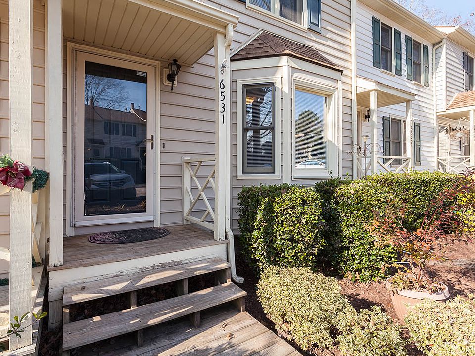 Great townhome! Elegant newly renovated townhome in excellent location. Spacious living room with wood-burning fireplace. Private secluded porch and deck overlooking the woods. Granite counter-top, custom high grade kitchen cabinets, upgraded vanities and brushed nickel fixtures. Updated laminate, tile and carpet. Immediate access to Raleigh Greenway, pool and tennis community. Right off of Lynn road in North Raleigh. Large outside storage. Close to North Hills, I40 and downtown.