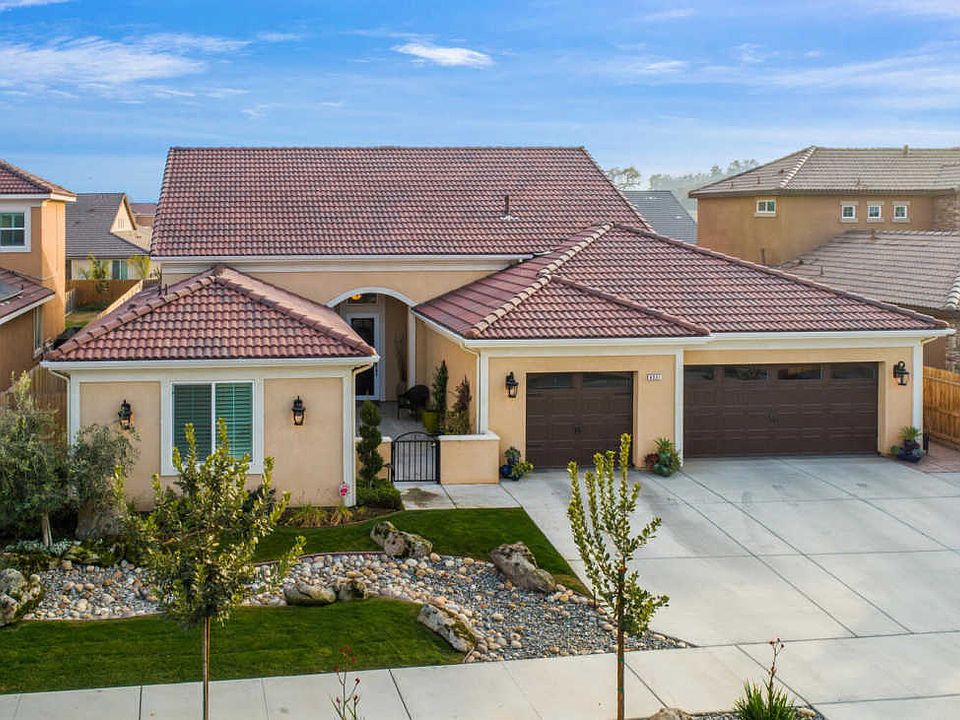 Stunning, turn-key home in safe dog-bone cul-de-sac. Short walk to Lion's Park and schools. Formal entry and open living room. Tile flooring throughout main living areas. Split floor plan. Formal dining room with views of the backyard landscape. Lots of windows, light and bright! Chef's dream kitchen with stainless steel Kitchenaid appliances, farm house sink, and breakfast bar. Loads of storage! Living room is pre-wired for everything and features custom built-in entertainment center with slow-close cabinets. Luxurious master suite with high ceilings and gorgeous barn door leading to the master bathroom which his & hers vanities and huge walk-in closet. Additional rooms are spacious and has so much character. The patio features fans, stamped concrete, firepit, and a sparkling pool with beautiful lights and waterfall features. 6x10 tuff shed, extra lights outlet, Christmas switch, boxes setup for solar or electric car (no power). Truly a home with so much to offer, call today!