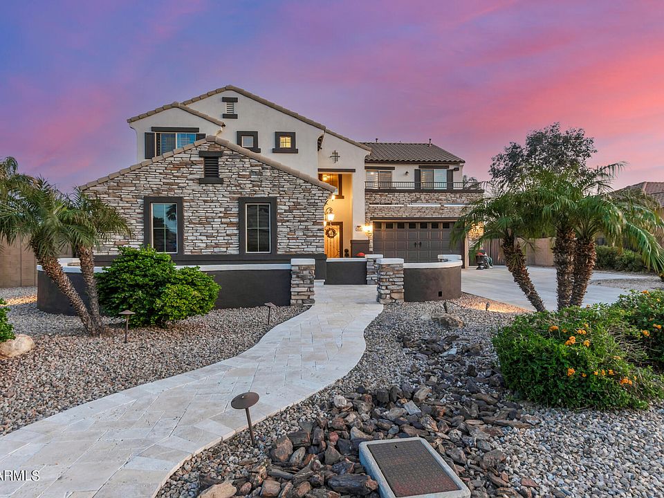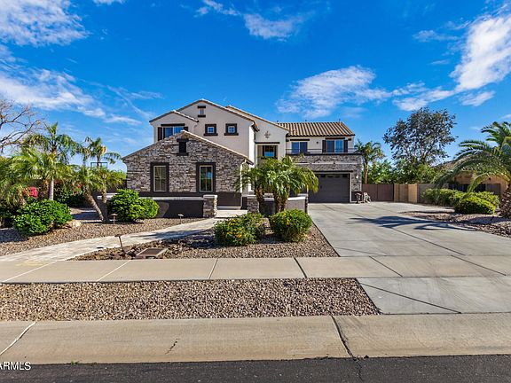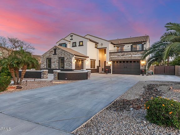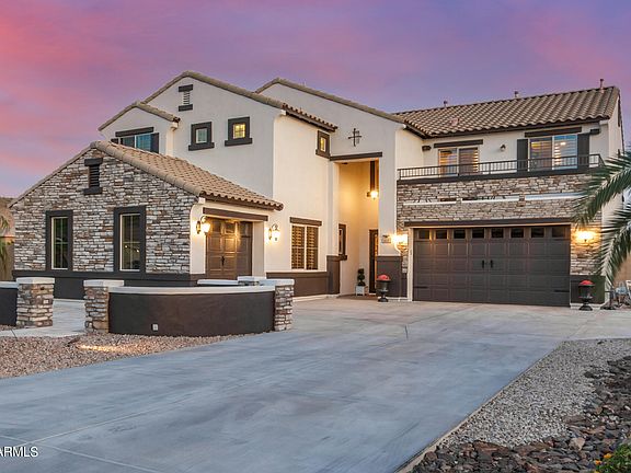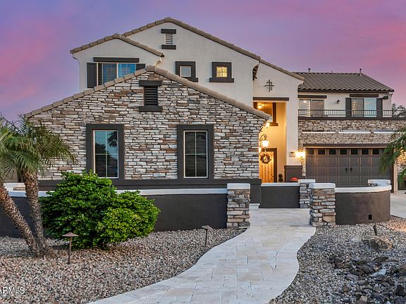 WOW! Your dream home in the desirable gated Tuscany Ranch community is now on the market! Beautiful 5 bed, 3.5 bath + loft offers a stunning-stone facade, a 3-car garage, RV gate, & a lovely courtyard w/ travertine pavers & mountain views! Fall in love w/the pristine interior featuring wood-look tile flooring, chic light fixtures, plantation shutters, archways, pre-wired surround sound throughout, & so much natural light. Mother-in-law suite downstairs w/ its own entrance from 3rd car garage! Magazine-cover kitchen boasts recessed & pendant lighting, white cabinets, tile backsplash, 4in thick quartz slab counters, upscale SS appliances, double ovens, a pantry, & a breakfast nook w/a bay window. Outside you will find over $150k spent on a luxurious backyard w/ resort style pool, swim up bar impressive fountains and fire woks, LED lighting, outdoor shower, a ramada w/ a built in BBQ and flat TV screen, putting green, & a sports court for all the family fun! No neighbors directly behind creates a more private feel and beautiful mountain views to top it all off! This home truly has it all! Don't miss your chance to own this little piece of paradise in the NW valley!