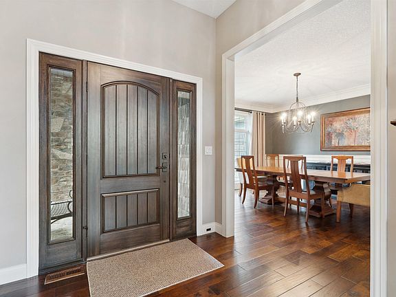 Situated on a park-like .69 acre lot with a private treed rear yard is a spectacular 5 bedroom, 4.5 bath, 1.5 story home. A lush green yard with extensive landscaping combined with the beautiful stone and shake exterior greats you as you walk up the winding side walk. A Windmiller Design Build and former parade home, offering a nicely appointed great room with gas fireplace, built-ins and coffered ceiling overlooks a gourmet kitchen with walk in pantry, stainless appliances, double oven, and newer fridge 2023. A preparation island and breakfast bar plus a spacious dinette is so much space to entertain. The glass sliders from the dinette opens to the patio & rear yard. Primary suite includes lighted tray ceiling, large adjoining private bath with soaking tub, walk-in shower & master closet with closet system. Over sized bedroom sizes on 2nd floor with private bath access for each BR. Finished basement includes rec room with projector TV and screen, for movie or game night. A wet bar with microwave and beverage fridge for the late night snacks and drinks. Finalizing the lower level is the 5th BR, exercise room and also a ton of storage. Large 3 car garage with 14x24 & 25x22 spaces. Located in Copper Ridge with a private fishing lake and a short walk to Hopewell elementary. 2024-11-02