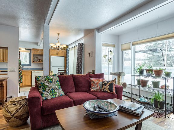 Cute and cozy end unit for extra privacy with mountain views. All three bedrooms are upstairs and spacious. Vaulted ceilings in master, fireplace, and lots of natural light. Close to JBER, shopping, and trails. This home is a must see!*Dues cover snow removal, ground maintenance, some roof repairs and external paint.
