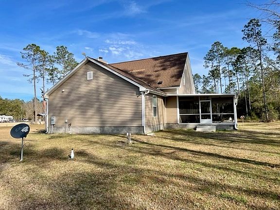 Country Living at it's best! Don't miss out on this beautiful 3 bedroom 2 bath home located on an acre of land in Howard Creek. The home features a large living room with wood burning fireplace and cathedral ceiling. Dining area with french doors that lead to a screened back porch and covered patio area perfect for an outdoor kitchen and great space to park your golf cart. Kitchen has stainless appliances, granite counter tops, island bar and lots of cabinets and storage. The master bedroom and bath are both spacious with separate walk in closets and tiled shower. Upstairs loft can be used for an office or extra sleeping space. Walk in pantry and laundry room. Storage Shed and pole barn give plenty of room to keep your RV, Boats and ATV all under roof. Located near Brothers river and 20 minutes from the beaches. This home has it all!