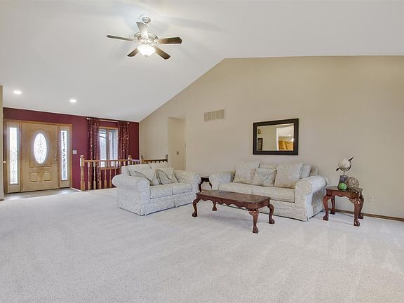 Beautiful home on 5 acres just north of 1st street in Newton! Rolling trees landscape, FANTASTIC country setting. 4 bedrooms, 3 baths. Open floor plan with vaulted ceilings and open staircase. Wood burning fireplace. Lovely kitchen with granite counter tops, eating bar, appliances, pantry and an attached utility room of your dreams! Master bedroom is complete with corner tub, walk in shower, and double vanities. Huge master closet! Basement has wet bar, rec room bath and 4th bedroom. Exterior is beautifully landscaped with perennials. Sprinkler system. AWESOME shop, fully insulated. Property setting is fully tree lined and private. Make this your home for the NEW YEAR!