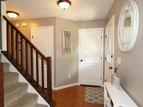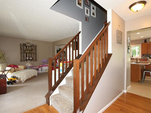 Relax on your front porch of cute 2 story - Lg master suite - 2nd floor laundry - stainless appliances & island in kitchen open to family room. Finished lower level with wet bar. Fenced yard backing to woods. Community pool - walking trails & sports fields. Don't miss this one!