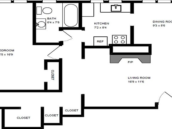 * Hardwood Floors, AC, many Closets, separate Living Room, Dining Room, Bedroom, and Kitchen. Nice layout (See Floor Plan - 2nd image above).