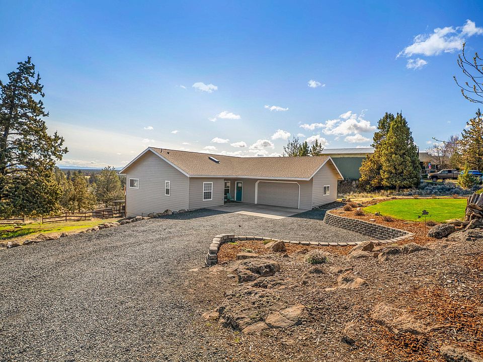 Turn-key single-level home with breathtaking easterly mountain views and peak-a-boo views of Smith Rock, perfectly situated between Bend and Redmond on 2.48 acres. The open-concept great room is bathed in natural light, creating a warm and inviting atmosphere. The beautifully updated kitchen boasts stainless steel appliances, gas range, tile backsplash, granite countertops, and a picture-perfect view from the kitchen sink. The serene primary suite offers private deck access, a spa-like floor-to-ceiling tiled shower, a double vanity, and a massive walk-in closet. Two additional bedrooms, a well-appointed laundry room with a sink and cabinetry, and an expansive deck overlooking the views complete the home. Enjoy a fully fenced area with shelter for livestock and a versatile outbuilding ideal for a workshop, office, or extra storage. Your dream Central Oregon retreat awaits!
