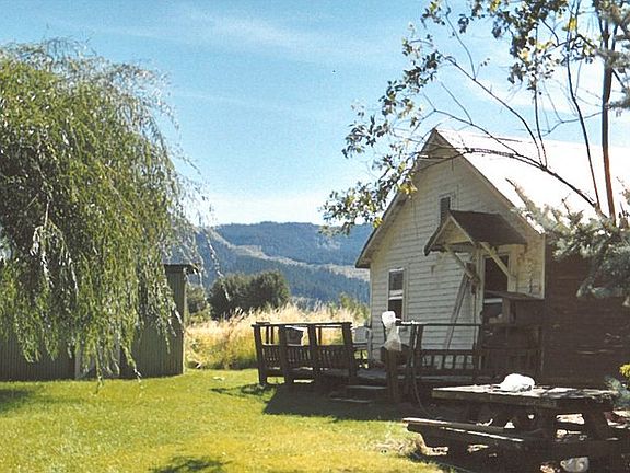 Gorgeous View Property! Small farm 2 Barns and 2 outbuildings. Home has been given NO VALUE. Has been lived in, power, heat and water currently on. Property is fenced. Rear of property has 2 fences for pasture. Middle Fork Irrigation. Refrigerator is excluded. Tall deer fencing on 3 sides of property.