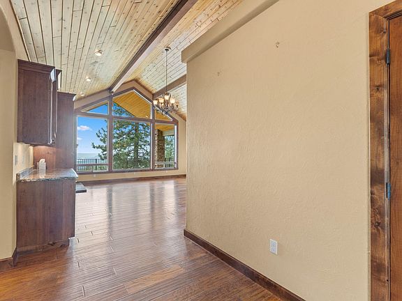 One owner, beautifully appointed, custom built home on 22.63 acres with gorgeous territorial views and overlooking Lake Spokane. Set amongst the trees in the gated community of Saddle Mountain Ranches. Enjoy sunset views from the raised, poured concrete covered deck with iron railings, cedar lined ceilings and outdoor speakers. Efficient and environmentally friendly geothermal forced air heating and cooling system. Finished and insulated 3 car garage that is plumbed for propane heat. Well water holding tank with hydrant riser for fire protection. Main floor, sunroom off garage with access to back deck is ideal for horticulturists or would also make a great hobby space. Featuring 4 bedrooms, 4 bathrooms with an additional main floor office space with built ins. Entertainers delight with custom bar areas on both levels and multiple access points to out door spaces. Enjoy cooler months by the cozy propane fireplace on the main floor or by the wood burning stove in the daylight basement.