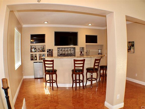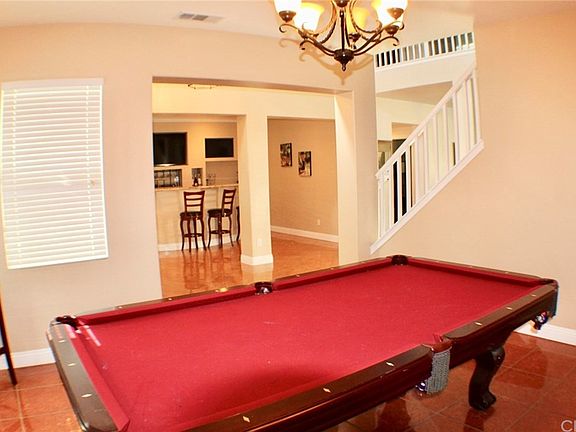 Welcome home to your very own piece of paradise! This immaculate home boasts 5 bedrooms complete with one downstairs plus a large loft. Pride of ownership at its best. As you enter into your new home you are welcomed to the left with a beautiful bar area perfect for entertaining. To the right is the game room where your guests will enjoy conversation over the pool table or formal dinning room. At the rear of the home your party continues in the over-sized living room complete with a glass burning fireplace. As you enter into your roomy kitchen you find stainless steel appliances, wine cooler and plenty of room for all the food your guests will need on the granite countertops. With the fabulous So. Cal weather your party continues in the back yard where you grill your meats on your built in BBQ and guests gather around the two fire-pits to enjoy the evening. Upstairs there is plenty of room for all the kids with 4 roomy bedrooms and a large loft. Need to escape the party for a bit? Do so in your spacious master bedroom complete with a romantic fireplace. The master bathroom is complete with his/her closets, separate tub/shower and a jetted tub... perfect to relax in after the party is over. Enjoy the multitude of upgrades throughout the home including.. surround sound, dual ac units, tile/wood flooring, dual sided staircase, high ceilings, recessed lighting, upgraded counter-tops and flooring.. and so much more, come see and fall in love with your new corner lot home.