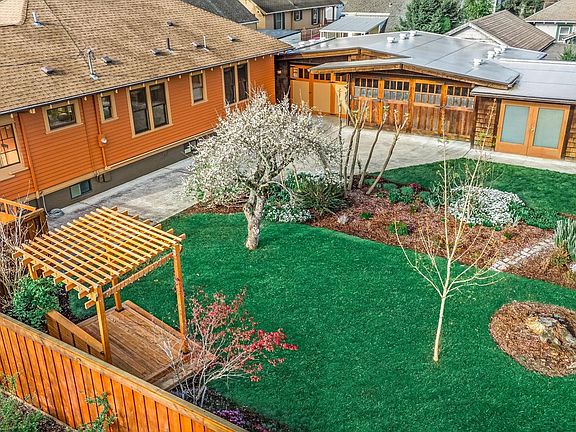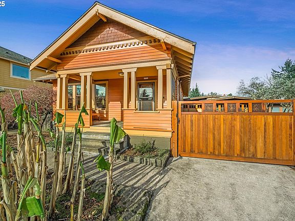 Nestled in the heart of the vibrant Arbor Lodge neighborhood, this exquisite vintage home seamlessly blends timeless elegance with modern sophistication. Thoughtfully restored with meticulous attention to detail, it boasts rich hardwood floors, original wood trim, and beautifully crafted built-ins that enhance its historic charm. The grand entryway welcomes you into a refined living space, complemented by a cozy family room and a stunning chef’s kitchen that perfectly balances classic character with contemporary updates. The main floor offers the convenience of mostly one-level living with two spacious bedrooms, a full bath, w/formal dining room. Downstairs is a luxurious primary suite with a beautiful bathroom and soaking tub, a laundry room, and a permitted ADU provide versatile living options. The lower level opens to an expansive sun-drenched patio, while the ADU, with its private street entrance, offers exceptional flexibility. This enchanting outdoor sanctuary is a true retreat, featuring lush gardens, fruit trees, meditation spaces, and a green-house. The detached yoga studio with sauna and outdoor hot tub provides the perfect setting for wellness or remote work. The oversized garage and attached large workshop invites creativity, whether for wood working, painting, sculpture, or other artistic pursuits. The workshop & garage are equipped w/a high capacity 220V outlet. EV plug next to the driveway for your electric vehicle. Situated on a tranquil street yet just moments from parks, cafés, restaurants, and the MAX line for easy city access, this home offers the best of Portland living. Recent updates, include fresh paint inside and out, new windows, fencing, raised garden beds, and fruit trees enhance both beauty and functionality. Plus, with an extra buildable lot, this remarkable property presents endless possibilities for expansion or investment. There is a separate Tax Lot R124871 of 3,000 square feet incl. for a combined sq ft of 10,000.