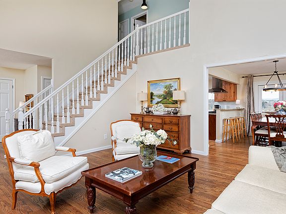 Amazing location! This home backs to open space with trails and breath-taking mountain views. Remodeled for open spacious living. Nicely finished hardwood floors throughout the main level with quality custom wood built-in cabinets and shelving in the living room with grand vaulted ceilings. The sun-lit kitchen with views was remodeled with beautiful knotty alder cabinets, 5 burner gas range, slab granite counter tops, large island with quartz counter top, stainless steel appliances, a convection oven microwave, and ample storage. Family room with cozy fireplace and a wet bar for entertaining and access to the large exterior deck with pergola. Spacious master bedroom with vaulted ceilings, 5-piece bath and walk-in closet. Thoughtful landscaping in front and back with new enlarged patio and raised level yard. Walk-out basement. Award winning Cherry Creek Schools. Community events hosted at park in the center of the neighborhood with fields, playground and basketball court.