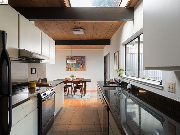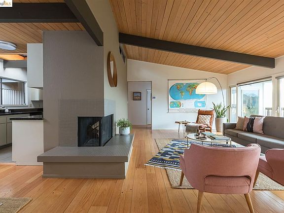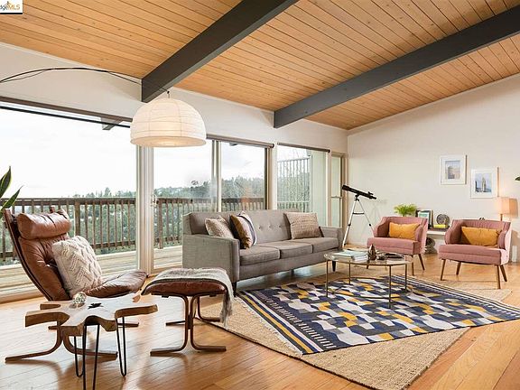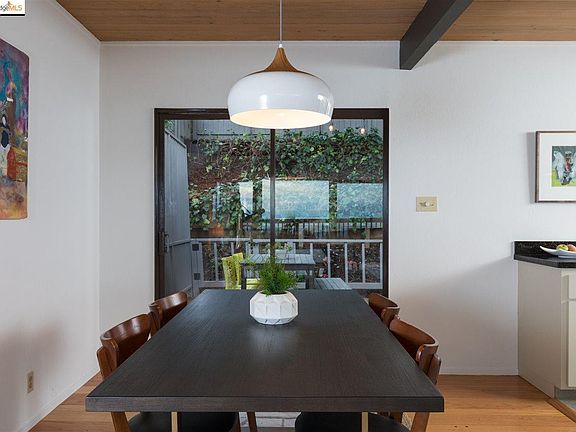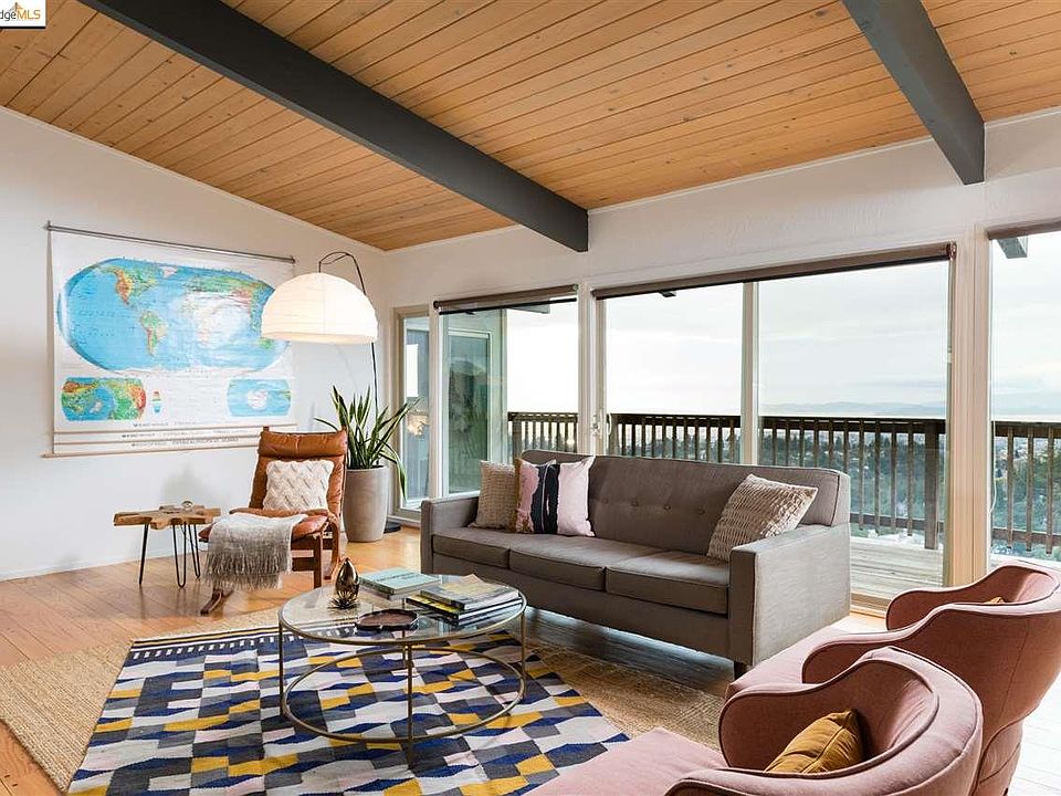 Mid-century home with a sweeping Bay vista that is also just a few minutes' drive from the bustle of Montclair Village. Enjoy stunning views through wall of glass leading to wide deck. Open floor plan with charming period details. Relax on the sunny deck or on the shaded, private patio under a large juniper tree. Once you set foot in this house you will not want to leave! Two-bedroom, one-bath house with interior stairway access to large, unfinished 1000+ sf lower level. Separate workshop. Additional storage room. Large garage.