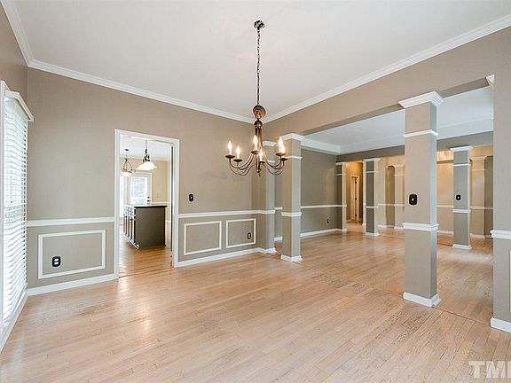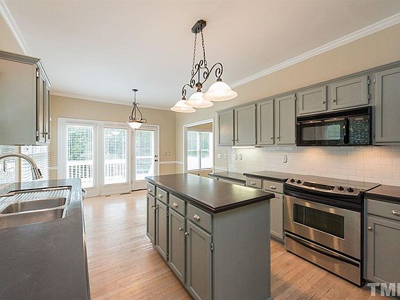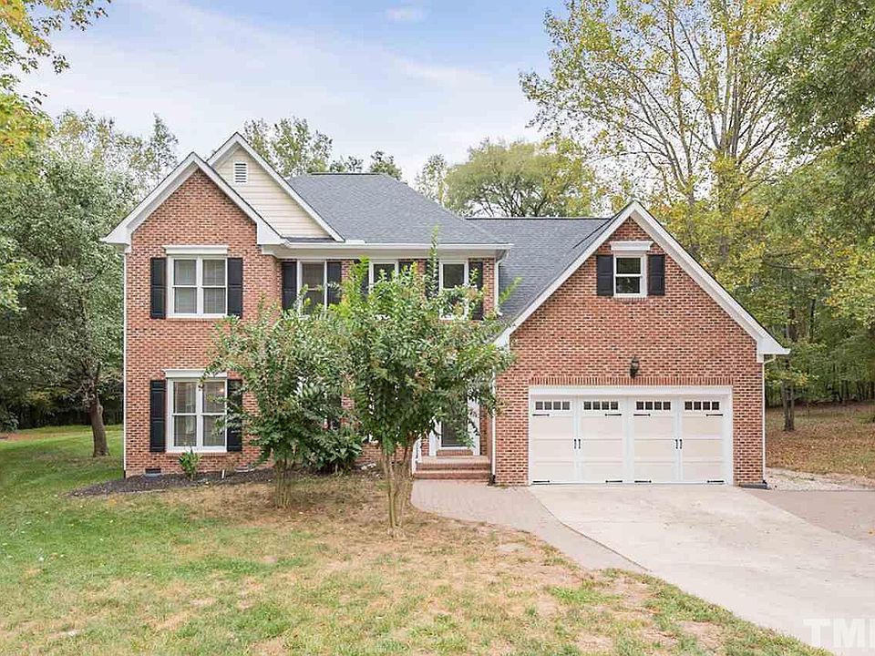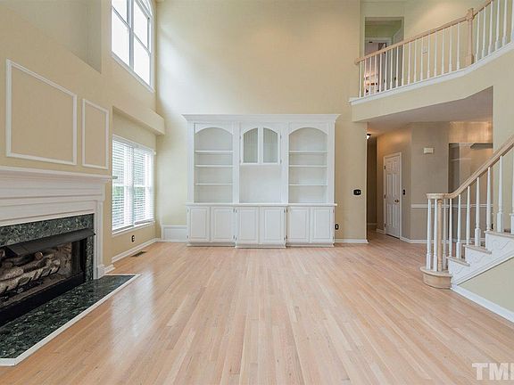 This Raleigh two-story offers a deck, a loft, hardwood flooring, a fireplace, Corian kitchen countertops, and a two-car garage.