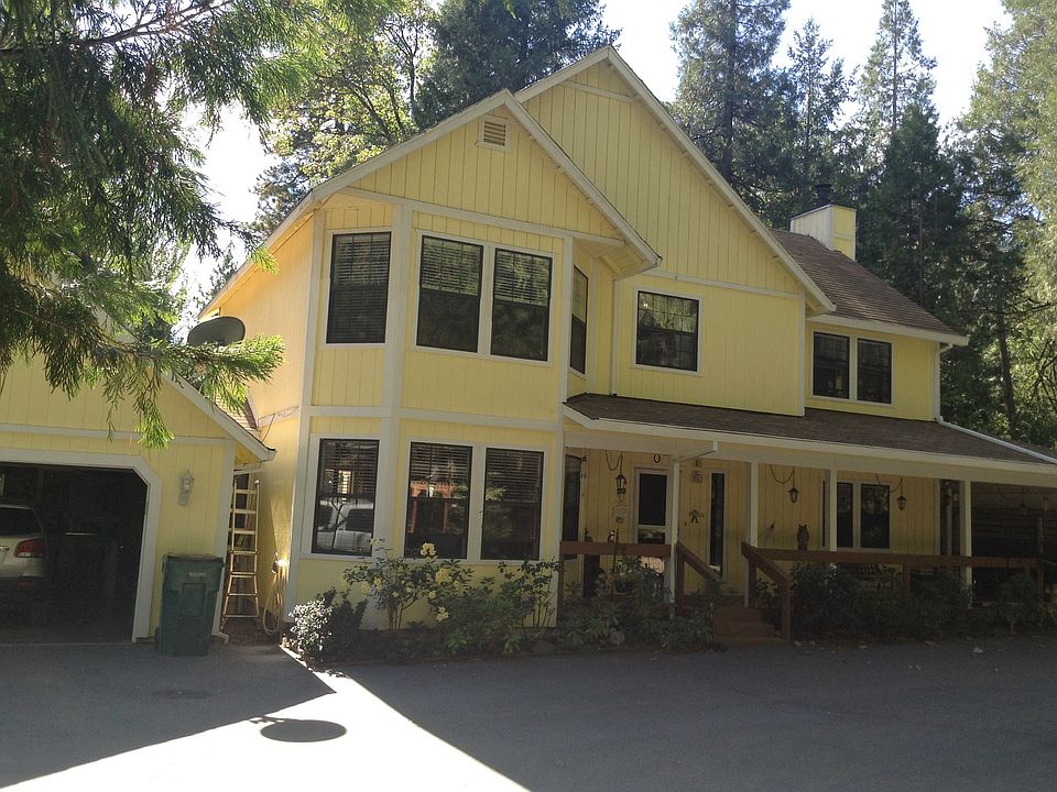 Property has a secluded feeling in the woods nearby shopping and schools. If you need a shop this has 3 outbuildings and a drive thru garage to attached shop which has finished walls, sliding glass door, roll up garage door. Home is very clean, remodeled kitchen, 2 story not a problem with a chair lift up the staircase. Master suite with master bath and sitting makeup area. Living room with freestanding wood stove for cozy nights. Ceiling fans, deck off living room, mud room/laundry room. Laundry room in garage in addition in inside laundry room. Separate Office with view to outside forest. Large front and rear yards with good access all around. 2 car carports and 2 car garage. Electric gates and fully fenced property.
