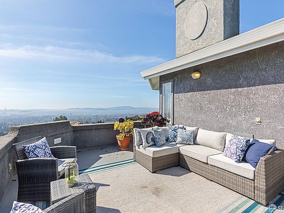 Perched hillside in Oakland's Montclair district boasting mesmerizing, unobstructed, and panoramic views of the Bay, SF, and multiple bridges sits this sizable 3 bedroom 2 bathroom home. A long driveway and motor court surrounded by shady trees gives ample privacy as you make your way to the front entrance. Step inside the foyer and head upstairs to the main level's inviting living area complete with a fireplace and access to the large terrace and views. Across from the living room, the formal dining room is conveniently attached to the kitchen which overlooks the deck. Head up some steps to a primary suite complete with a spacious ensuite bathroom and walk-in closet. Two more bedrooms, a 2nd full bathroom, and laundry room complete the bedroom level. The huge garage is perfect for an ad hoc workshop, home office, or for more storage. Additional details: attic storage above the primary bedroom, solar panels on the roof, and EV charging in the garage. Enjoy the tranquility that comes with living in the wooded winding roads above Oakland while still being within a quick drive to all of the East Bay's lively spots.