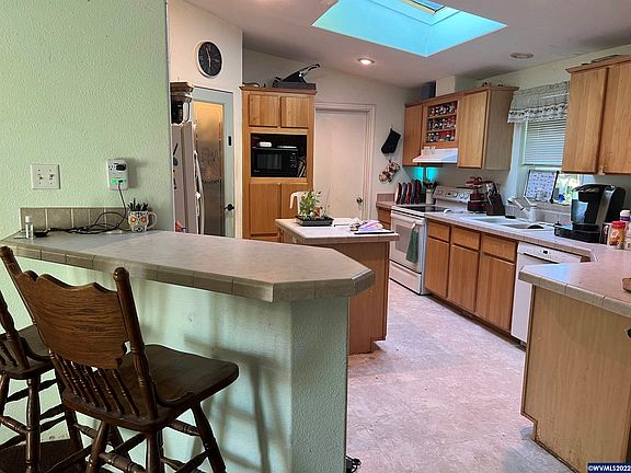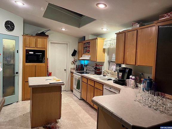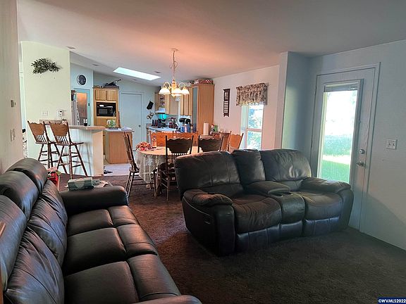 Country living in the Labish community with room for all your ideas! Large double-wide Palm Harbor MF with attached 2-car garage and RV hook up. Open floor plan with vaults throughout. Newer roof. Spacious primary bedroom with walk-in closet and bathroom with separate shower/tub and double vanity. Living room AND family room. Kitchen with powered island and walk-in pantry. Ready for your flooring updates. Over an acre for gardening, critters, shop. Beautiful agricultural setting.