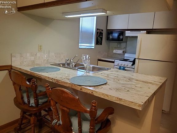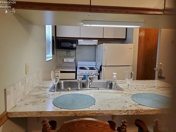 First floor end unit last building on channel. Panoramic views of marina and Lake Erie. The enclosed 3 season room is accessible from the living room and bedroom, and is approximately 27' long, it overlooks the Harbor where your 30' boat slip awaits you just outside your door. Newer flooring, countertops, and remodeled bath. Beautiful views, wonderful amenities such as tennis courts, pavilion, in ground pool and fish cleaning stations! Easy access to Lake Erie.