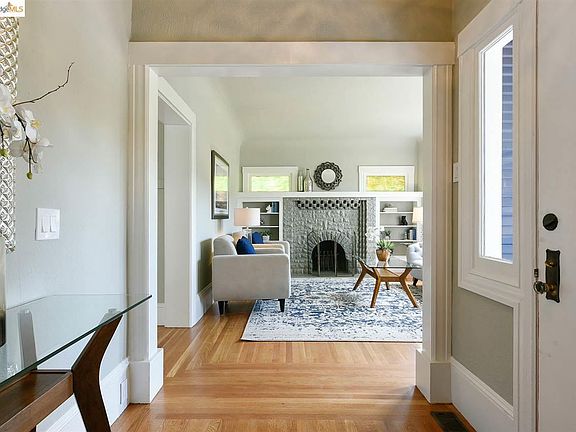 Lovely remodeled 1911 Colonial Revival on quiet one block street. Much original detail intact! Coved ceilings, art glass in living room, leaded glass doors in dining room hutch. Fresh paint, in & out, refinished oak floors. Gorgeous eat-in kitchen remodel with new cabinets and appliances & a set-up for a laundry area. Single lite Marvin dual-pane glass doors open to the expansive new deck from the kitchen as well as well from one of the two bedrooms. New hall bath with shower over tub. Much extra potential in full basement (low ceiling). There is a partial bath and a few "finished" rooms, including one set up as a study. Pull down stair to attic in the kitchen. See picture. OUSD states Peralta school, Claremont Middle and Oakland Tech. Walkscore ~ 86. Several blocks to Ashby BART! Close to cafes and yummy eats, Berkeley Bowl, bike lane on Shattuck. Very Special!