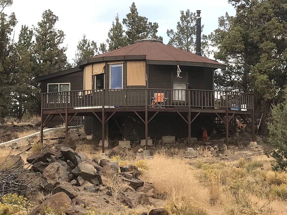 Yurt, 1 bedroom, 1 bath with amazing view of Central Oregon's Cascade Mountain Range. 2.68 acres of land. Solar Panels. Wood Stove. Electric wall heaters. Air Conditioning. Storage shed. Big deck facing west for amazing sunsets.