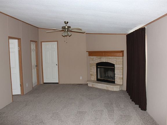 Like new 3BR 2BA 2 living areas on over two acres out in the country. New paint, new carpet, new blinds, and missing appliances are included with acceptable offer. This home features 2 good sized living areas, a STORM SHELTER, wood burning fireplace, a fenced in back yard, sliding glass door off of the kitchen, thermal pane windows, and ceiling fans. The mortgage company owner will finance a new buyer and less than perfect credit is okay!