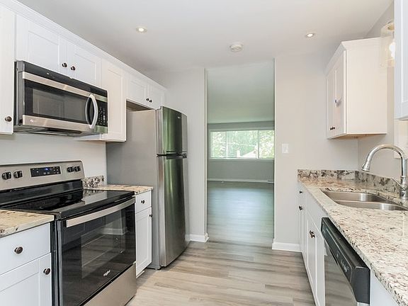 Welcome to this delightful 3-bedroom, 2-bathroom home in Walkertown, offering over 1,200 square feet of comfortable living space. Thoughtfully updated and move-in ready, this home combines charm with modern conveniences, making it the perfect place to call your own. The inviting front porch sets the tone, providing a cozy space to enjoy your morning coffee. A sliding screen door leads to an expansive porch, ideal for entertaining or simply relaxing while taking in the serene views of the wooded backyard. Inside, the living room features gorgeous Luxury Vinyl Plank (LVP) flooring, creating a stylish and low-maintenance area flooded with natural light from large windows. The kitchen is a showstopper, boasting stunning marble countertops, sleek white cabinets for ample storage, and updated appliances, making meal preparation a breeze. The primary bedroom and two additional bedrooms offer cozy carpeting and ceiling fans for added comfort. Each room includes generous closet space, ensuring an organized and tidy living environment. The home's two bathrooms each have unique features. One offers a standing shower with a simple white vanity for a clean and modern aesthetic, while the second bathroom features a tub/shower combination and a larger vanity with rich dark wood accents, adding warmth and character. Don't miss the opportunity to own this beautifully updated home in Walkertown, where charm meets functionality. *Maymont Homes provides residents with convenient solutions, including simplified utility billing and flexible rent payment options. Contact us for more details. This information is deemed reliable, but not guaranteed. All measurements are approximate. Actual product and home specifications may vary in dimension or detail. Images are for representational purposes only. Some programs and services may not be available in all market areas. Prices and availability are subject to change without notice. Advertised rent prices do not include the required application fee, the partially refundable reservation fee (due upon application approval), or the mandatory monthly utility management fee (in select market areas.) Residents must maintain renters insurance as specified in their lease. If third-party renters insurance is not provided, residents will be automatically enrolled in our Master Insurance Policy for a fee. Select homes may be located in communities that require a monthly fee for community-specific amenities or services. For complete details, please contact a company leasing representative. Equal Housing Opportunity. This property allows self guided viewing without an appointment. Contact for details.