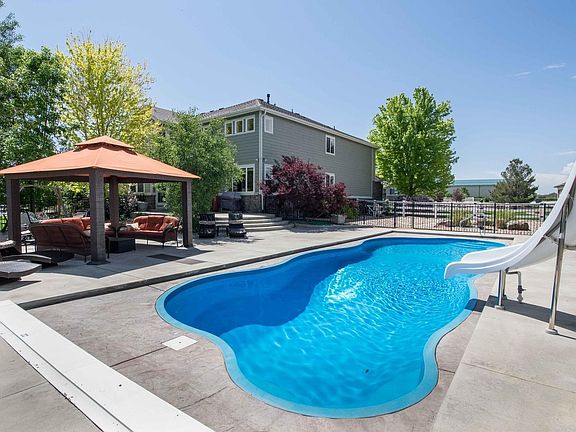 Beautiful family home in desirable Eagle Shadow neighborhood. Very spacious, open floorplan includes gourmet kitchen, granite countertops, large island and walk in pantry. The master suite boasts an elegant 5pc bath. 3 more lg bedrooms upstairs with bathrooms. The main floor also includes a study, dining room and bedroom. Outdoor living is absolutely awesome! Saltwater pool, firepit, gazebo and gorgeous landscaping! Must See!!