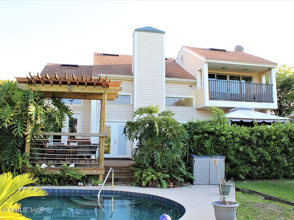 Back on the market, buyer financing fell through. Spectacular customized Pool Home, on a tidal canal only 1000 feet to the St. John's, Shows Like a Tropical Paradise. Very well maintained in an established neighborhood. The moment you walk in, this home opens up delivering beautiful sight lines with views of the Formal Dining Room, Travertine fireplace, and tropical pool area. The upstairs master bedroom features a cathedral ceiling of Brazilian Teak, and exotic African Okoume wood floors. The master bathroom feels like your own private spa with heated tile flooring. Spacious and Accommodating, a large eat in kitchen with granite countertops, double oven 42'' cabinets, huge pantry and lots of cabinet space. French Doors lead to the Great outdoors. Dock and deck need work. Whether you are entertaining or relaxing, you will enjoy the large deck overlooking the pool. Outdoor Living at it's Bes