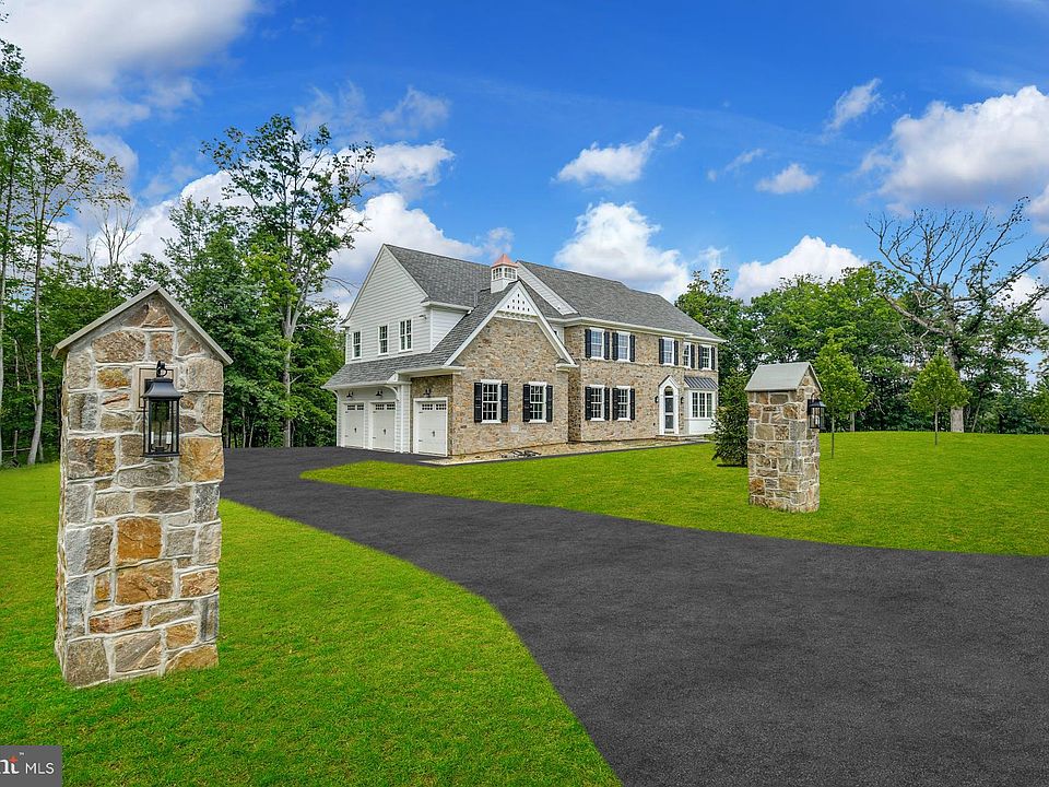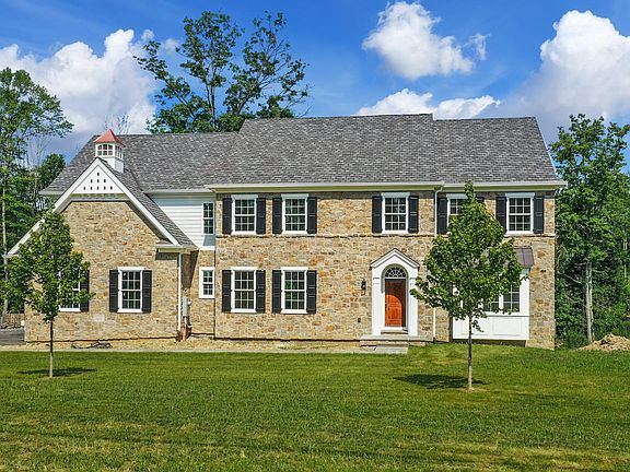 Luxury new construction without the wait! A Classic Farmhouse exterior with Bucks County Fieldstone blends seamlessly with an interior boasting all the modern amenities you want in a home! Tranquility awaits as you take in the sights and sounds of nature, from the soothing water trickling in the creek to the deer, red fox and hawks roaming in your private retreat. Bucks County craftsman Andrew Lykon of Lykon Custom Builders creates an exceptional living environment where form and function coexist with value and a timeless aesthetic. This custom home on 10+ acres has approximately 4200 SF of elegant and thoughtful living space. 9 ft ceilings on all levels, wide plank hardwood floors throughout, custom millwork, crown moldings and raised panel wainscoting create an air of sophistication. The stone entry piers make a grand statement as you approach the home and the welcoming Portico with custom arched door and 2-story foyer graciously greet your guests. The open floor plan is an entertainer’s dream and flows easily from one room to the next. You will love cooking from the Chef’s Kitchen complete with expansive, Quartz-island, luxury appliance package and wet bar. Take in the serene views of nature while enjoying your morning coffee from the fabulous Morning room with vaulted ceiling and walls of windows. The Great room with coffered ceiling features a full-height stone fireplace with beamed mantel, flanked by 8 ft Anderson sliding doors to the TimberTech Deck - the perfect spot for dining alfresco or relaxing in the sun. Host holiday gatherings in the elegant Dining Room with plenty of room to seat large parties. The Living room allows for additional entertaining options and the Study provides a peaceful space to work from home. This is truly Country Living at its Finest! The impressive turned staircase leads you to the second floor with a gallery hallway that adds a decorative touch. The luxurious Primary bedroom suite with vaulted ceiling boasts two generously sized walk-in closets and a large ensuite bathroom complete with dual vanities with quartz counters, dual toilets; a relaxing, freestanding soaking tub; walk-in shower with dual rain heads and controls, and radiant heat under the porcelain tile floor. The attached sitting area allows for an optional guest room or second study. Bedroom One has an ensuite bathroom, Bedrooms Two and Three share a connecting bathroom and all have walk-in closets. Convenient second floor laundry room. The daylight, walk-out basement has room for a home gym, storage, or additional entertaining options and provides easy access to your scenic backyard oasis. Feel yourself exhale – you are home! There is the potential to add an accessory building, such as a She-Shed, Art/Music Studio or Pole/Horse Barn. Plenty of land for pastures with potential to house horses or other livestock. Builder warranty included. Plumstead township is a hidden gem in Bucks County, close to everything and yet tucked away to provide the peace and privacy you value. The quaint and historic towns of New Hope and Doylestown are a stone's throw away with wonderful restaurants and entertainment venues. Easy commute to New York, New Jersey, or Philadelphia. Award-winning Central Bucks School District. With the 10.53 acre parcel there may be potential for preferential taxation under Act 319. Contact listing agents to request Spec Sheet with details.