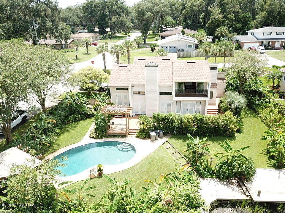 This unique customized pool home has lots of bells and whistles, and is ready for a new owner. Discover your own backyard paradise that's nestled on a corner lot surrounded by tropical banana trees on a tidal canal connecting to the St Johns River. The upstairs master bedroom features a cathedral ceiling of exotic wood with a master bathroom the master bathroom feels like your own private spa with heated tile flooring. Downstairs, the kitchen has custom 42'' cabinetry, granite counter tops, and a double-dutch oven. Outside, this home features a large deck overlooking the pool with a new pebble tech lifetime warranty lining. The roof was replaced 3/10/17, the electrical panel was replaced 3/5/07, and the AC system replaced 2/16/07.SELLER IS OFFERING A $7,500 SELLER CONCESSION CREDIT.