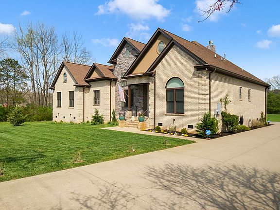 (P) Gorgeous, custom built all brick home sitting on 2.5 acres with creek, serene back porch overlooking the property and a One bedroom, one bath apartment above garage complete with full kitchen and separate entrance which recently leased for $1,400 mo. This home has large windows offering plenty of natural light! Easy one-level living with open concept, trey ceilings with recessed lighting, hardwoods, granite countertops and 6" crown molding throughout, gas cook-top and formal dining room with beautiful chandelier and 16' ceiling. Built-in desk area/buffet off gourmet kitchen to keep things organized. Master suite has 2 dressing areas separated by large rainfall shower on main floor and another 3 en-suite bedrooms. 3 car garage with extended driveway and large turnaround.