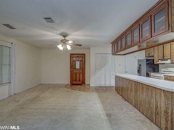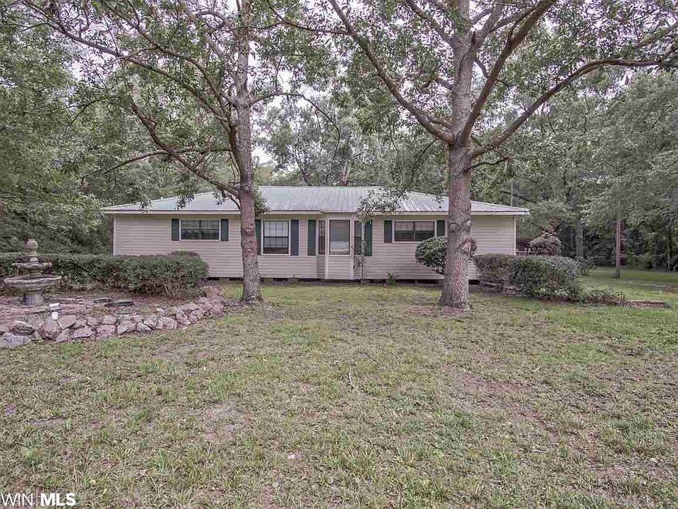 Welcome to Bay road. Rooted on over 5 acres right by the Mobile Bay, enjoy walks to the bay to watch the sunsets with your family on the water. Sitting shaded under big beautiful trees you will instantly feel welcomed home. With the kitchen overlooking the living area, you will never miss a minute of the action. This open floor is beaming with natural sunlight from the sliding glass doors, and an eat-in breakfast area this area is perfect for drinking coffee while reading your favorite book. For extra privacy the master suite and the guest bedroom both come complete with en-suites. The bonus sunroom is ideal for watching the kids play from the inside. When you want in on the backyard fun take delight in watching from your back porch or jump right into the mix in the big open yard. Under the carport there is extra storage for all your outdoor gardening tools or games. Book your appointment today to make this home yours!