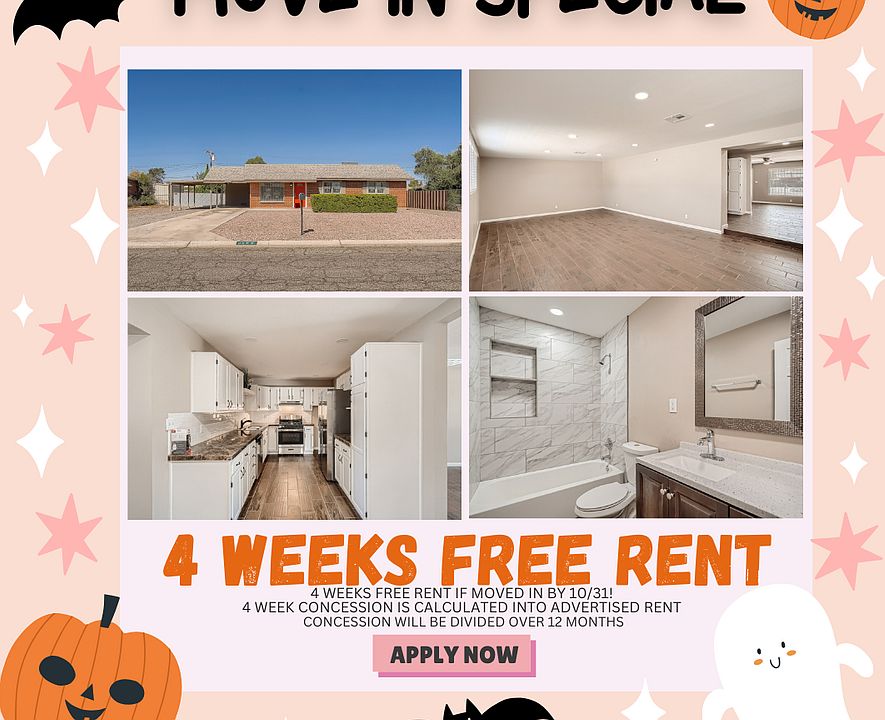 Simona Bell Don't rent from Wall Street rent from Atlas where you are a person, not a number! We believe in helping our residents become homeowners and investors with our Uplift Program! RECEIVE A FREE IPAD OR 55-INCH TV IF MOVED IN BY 10/31 4 WEEK CONCESSION IS CALCULATED INTO ADVERTISED RENT OF $1,692 4 WEEKS FREE RENT IF MOVED IN BY 10/31 Concession will be divided over the 12-month initial lease term. Restrictions apply and this offer is subject to change or cancellation Welcome to 6536 E Calle Castor, Tucson, AZ 85710! Charming single-story red brick home with 2-carport spaces w/extended driveway, & large front yard. This is the one you're looking for! The welcoming interior boasts bountiful natural light, a lovely living room for your guests, & wood look tile floors throughout. Spacious family room w/backyard access is perfect for entertaining. Gorgeous kitchen showcases a plethora of white shaker cabinets, marble counters, tile backsplash, SS appliances, & a pantry. The sizable main bedroom features recessed lighting, a sitting room, 2 large closets, & a private bathroom w/designer's tile shower. Secondary bedrooms enjoy soft carpets. Host fun gatherings in the well-sized backyard Total Monthly Rent: $1,843.99 Your Cozy New Nest: $1,845.00 Resident Benefit Package: $60.00 Utility Management: $9.99 MONTHLY CONCESSION DEDUCTION FOR FIRST 12 MONTHS: -$153.00 *Psst... don't forget: this doesn't include pet rent (if applicable), pool fees (if applicable), or saving the planet (sustainability fees, if applicable). Taxes and utilities are on you, too!* **Security Deposit** As low as one month's rent for highly qualified applicants and we do have a $1,845.00 deposit alternative! A leasing admin fee of $150.00 will be applied and is due at the time of move in. **Resident Benefits Package (RBP)** This sweet deal makes life a breeze! It includes smart home upgrades like a thermostat that practically thinks for you, front door smart locks for easy convenience, plus automatic quarterly air filter delivery, utility management, and even renter's insurance! **Pet Policy** We LOVE fur babies A $300 non-refundable fee per pet, plus as low as $35.00/month depending on pet screening. **Application Requirements** Everyone 18 and older needs to apply, and yep, that means a background and credit check. We'll peek at your financial history toono biggie, but it might be part of our final decision. We're looking for proof of income (3x the rent), no evictions in the last 5 years, and clean records with previous landlords. Bankruptcies will also be considered in the final decision! We may also ask for extra documents if the application screening requires it! **A Few Extra Notes** Atlas Real Estate complies with all the rules: local, state and federal laws! Pricing and photos could change! Check the property in person if you can using our self-showing technology or reach out and we will show you in person! Be on the lookout for scammers! We only accept payments through trusted methodsno Venmo, Zelle, Cash App, bank wire transfers, money orders, or mystery money apps. No Craigslist listings or Facebook Marketplace listings either! Can't wait to welcome you home! Let's get Romeo that treat! Apply today and let's do this! Simona Bell Professionally managed by Atlas Real Estate, LLC. @REALTOR