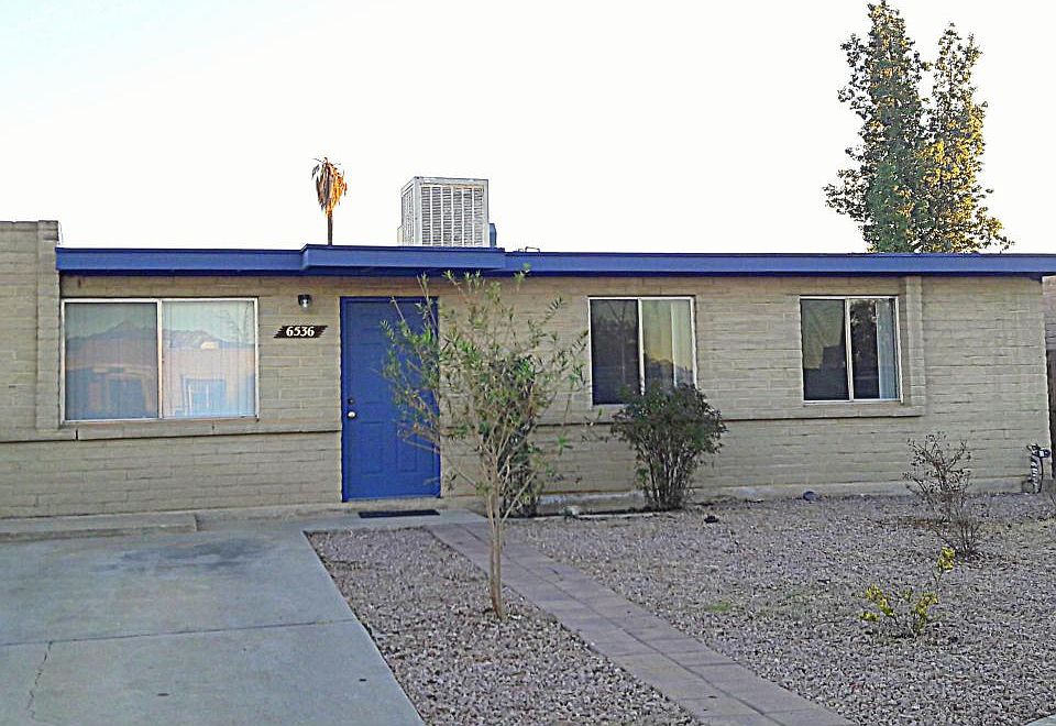 1084 Sq Ft 3 bedrooms, 2 baths masonry end unit townhouse on a low traffic street, with no HOA. Kitchen has dishwasher, double sink with garbage disposal, two door refrigerator, electric range, large pantry off kitchen, lot of cabinet space. A large fenced rear yard which wraps around the house on the west side. There is a car sized gate to the alley. The interior has recently been painted and has new carpet in the bedrooms. Seller is a licensed agent in AZ.